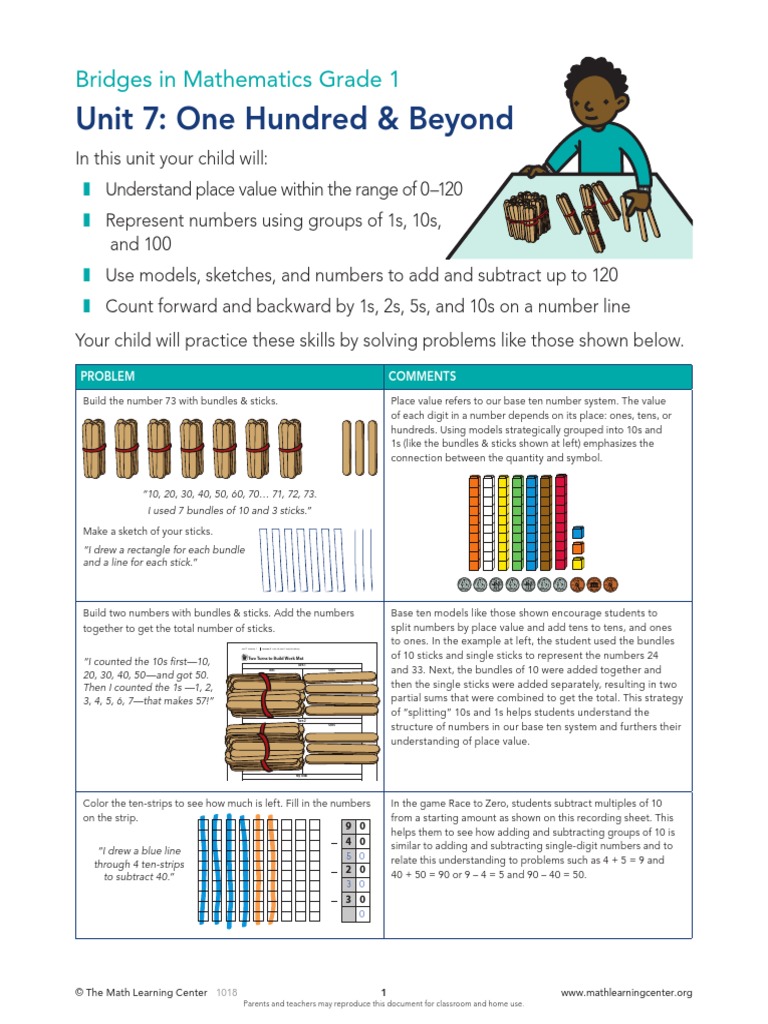 Bridges in Mathematics Grade 4 Teacher Masters Answer Key Bridges in Mathematics Grade 4 Student Book Answer Key. A Sketch Sashas sticks in the first box and Joses in the second box. Grade 1 Unit 7 Module 3 Practice Pages for Math at Home.